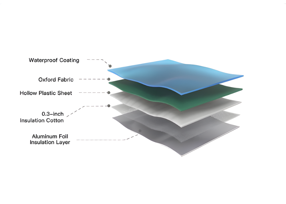 Multi-layer insulation and aluminum-foil inner trap and reflect heat, reducing drafts in freezing weather..
